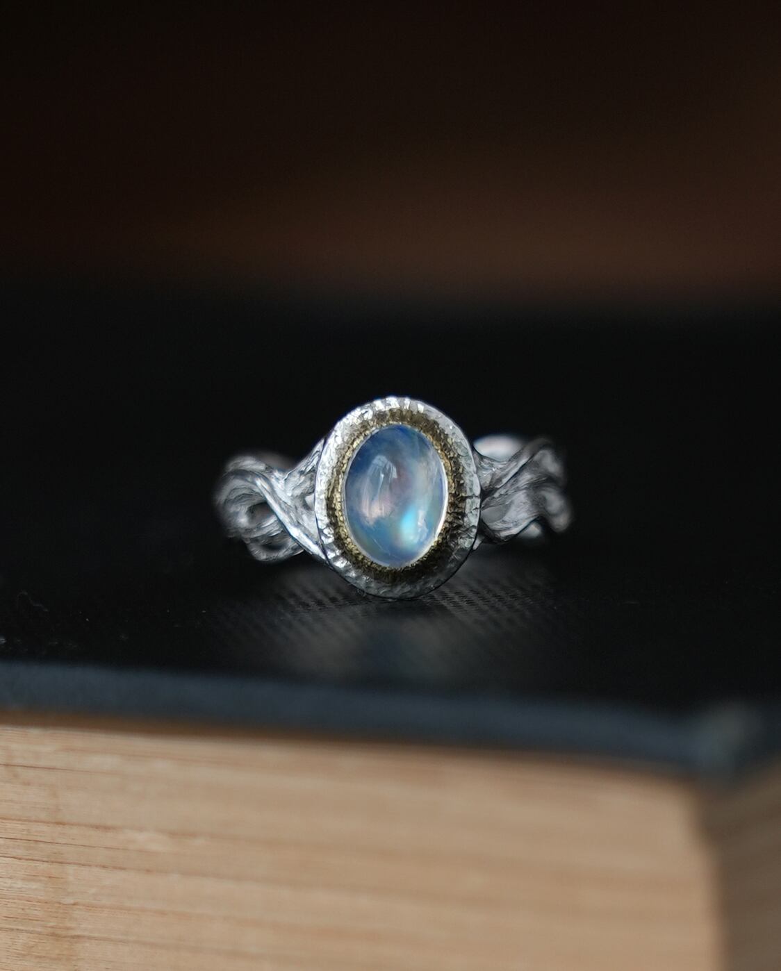 Rainbow moonstone silver & brass ring 26-r2 レインボームーンストーン リング