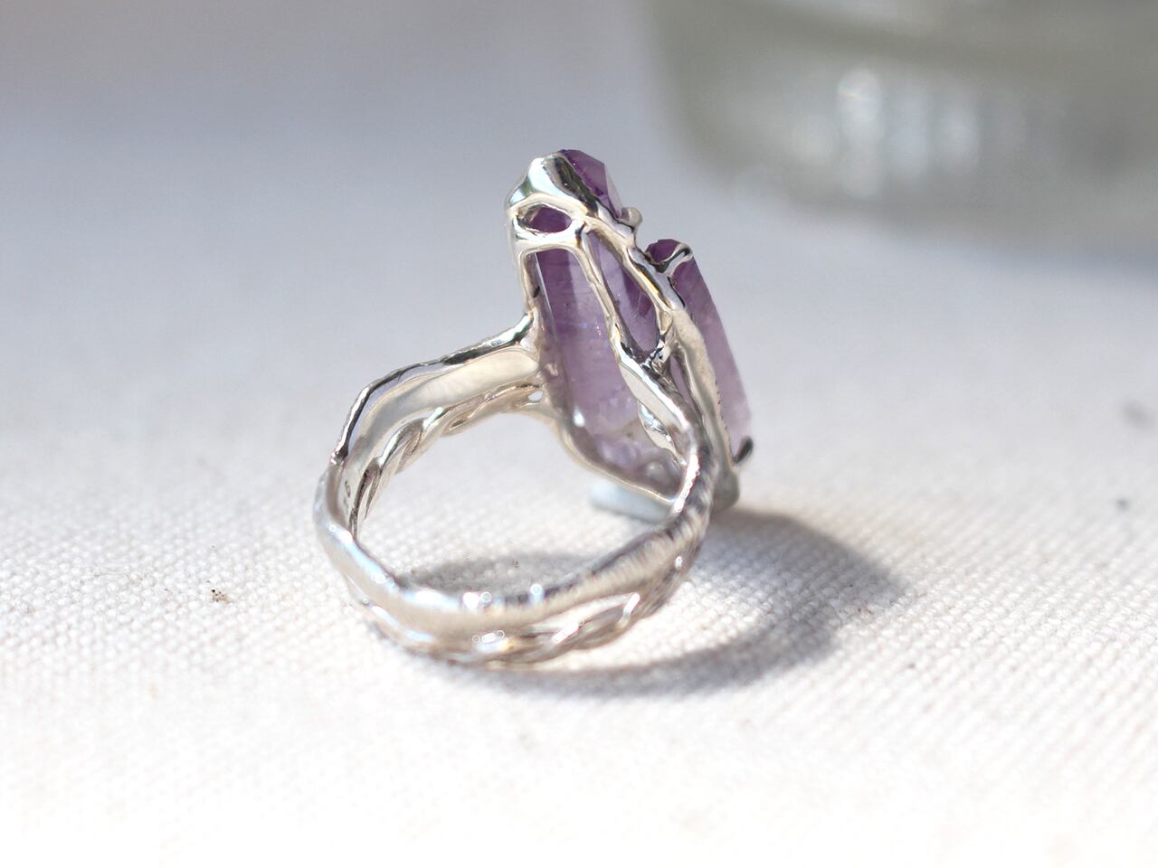 二つの結晶が仲良く並んだ状態のアメジストをそのままシルバーの石座で包み込みました。