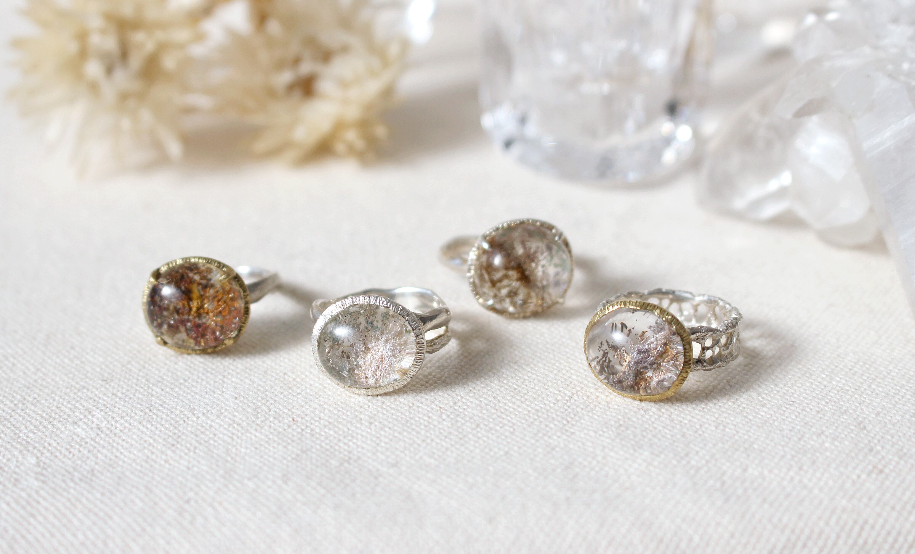 透明で潤いのあるクォーツの中に様々な景色を閉じ込めたガーデンクォーツ。